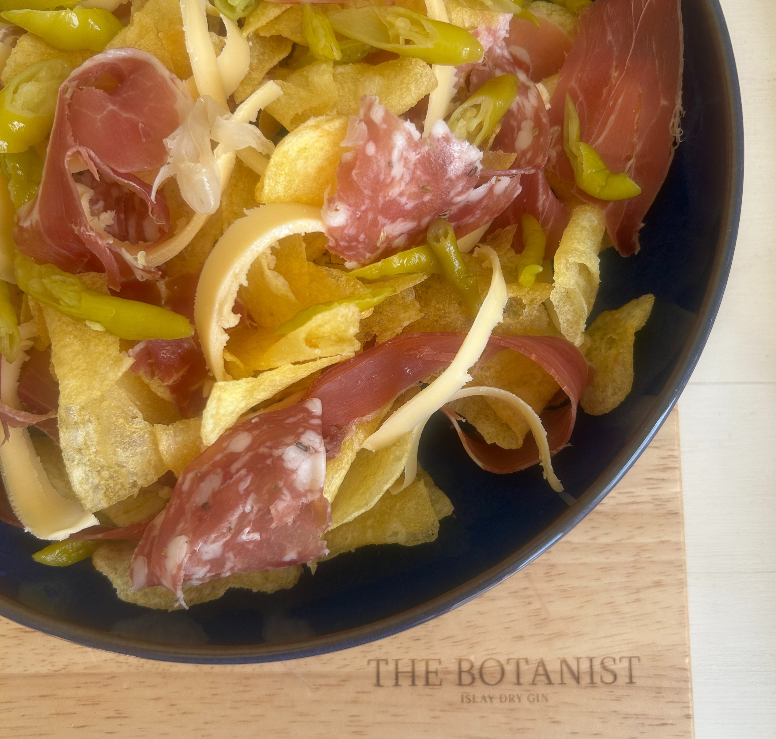 ‘Hosting at home is ideal because at the moment I’m travelling a lot and it’s a chance to have a low commitment, open-ended drop in for friends and family who are also all juggling the joys of life too,’ says Abi. Her go-to dish? ‘Right now, I’m jumping on jazzing up crisps with serrano ham, cheese, olives and pickled chillies - they’re great for sharing.’ As for setting the tone, Abigail recommends the Greenhouse candle from Earl of East. ‘I always light it when I’m having folk round. It’s a nice, light and airy tomato vine scent that’s not too overpowering.’ And of course, she always has a bottle of The Botanist chilling too.